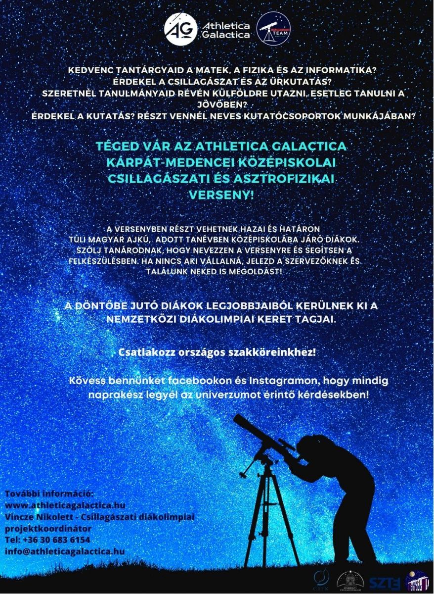Végül bemutattuk nekik hazánk egyik legnívósabb csillagászati versenyét, az Athletica Galacticat. Szó esett a felkészülési lehetőségekről és a verseny menetéről, valamint, hogy az itt szerzett tudást és tapasztalatot a versenyzők később is fel tudják használni. A tanulók lelkesen fogadták mind a két előadást és végig aktívan részt vettek benne. A program végeztével megköszöntük nekik és a tanároknak is a figyelmet. A résztvevők és mi is pozitív élményekkel gazdagodva elbúcsúztunk.