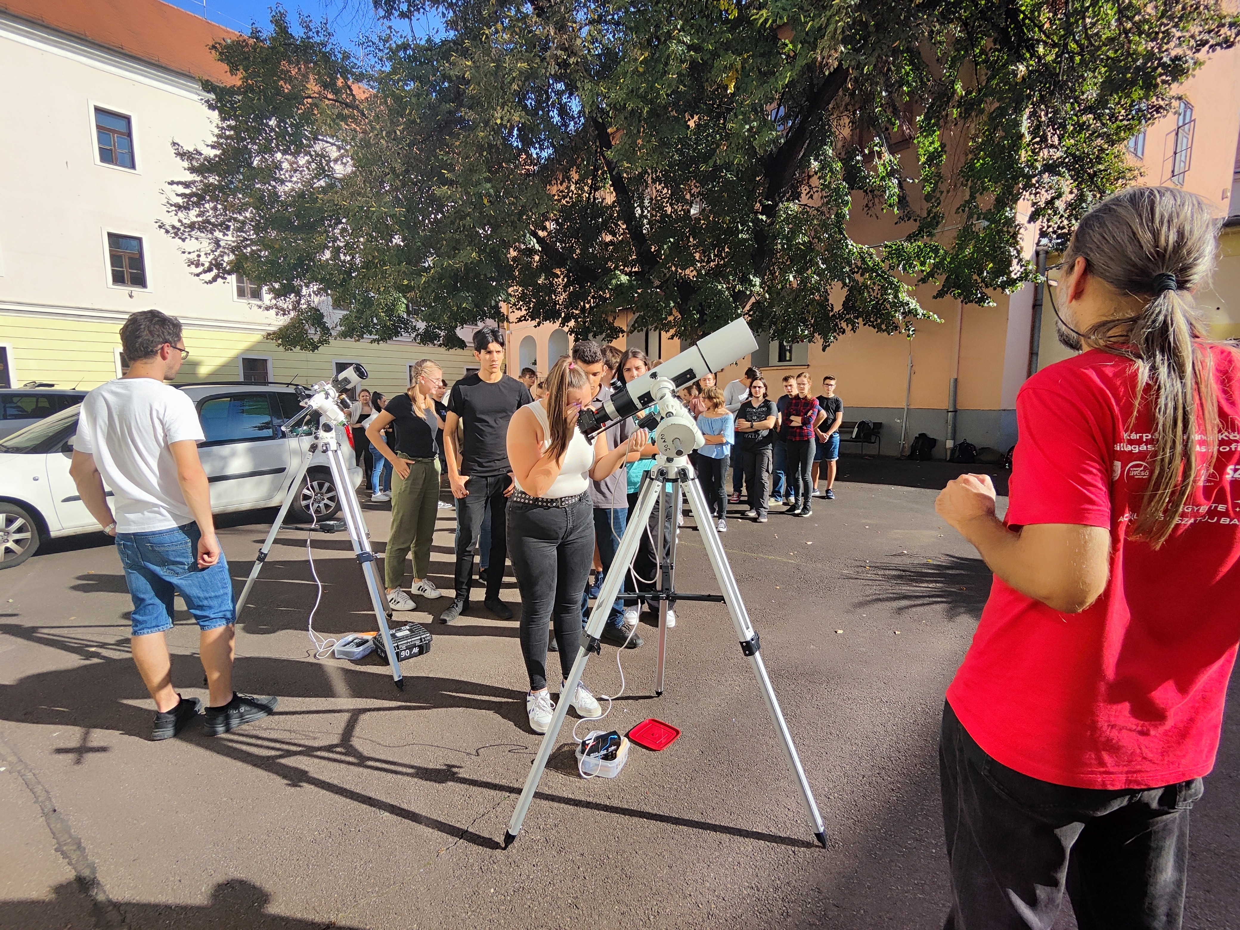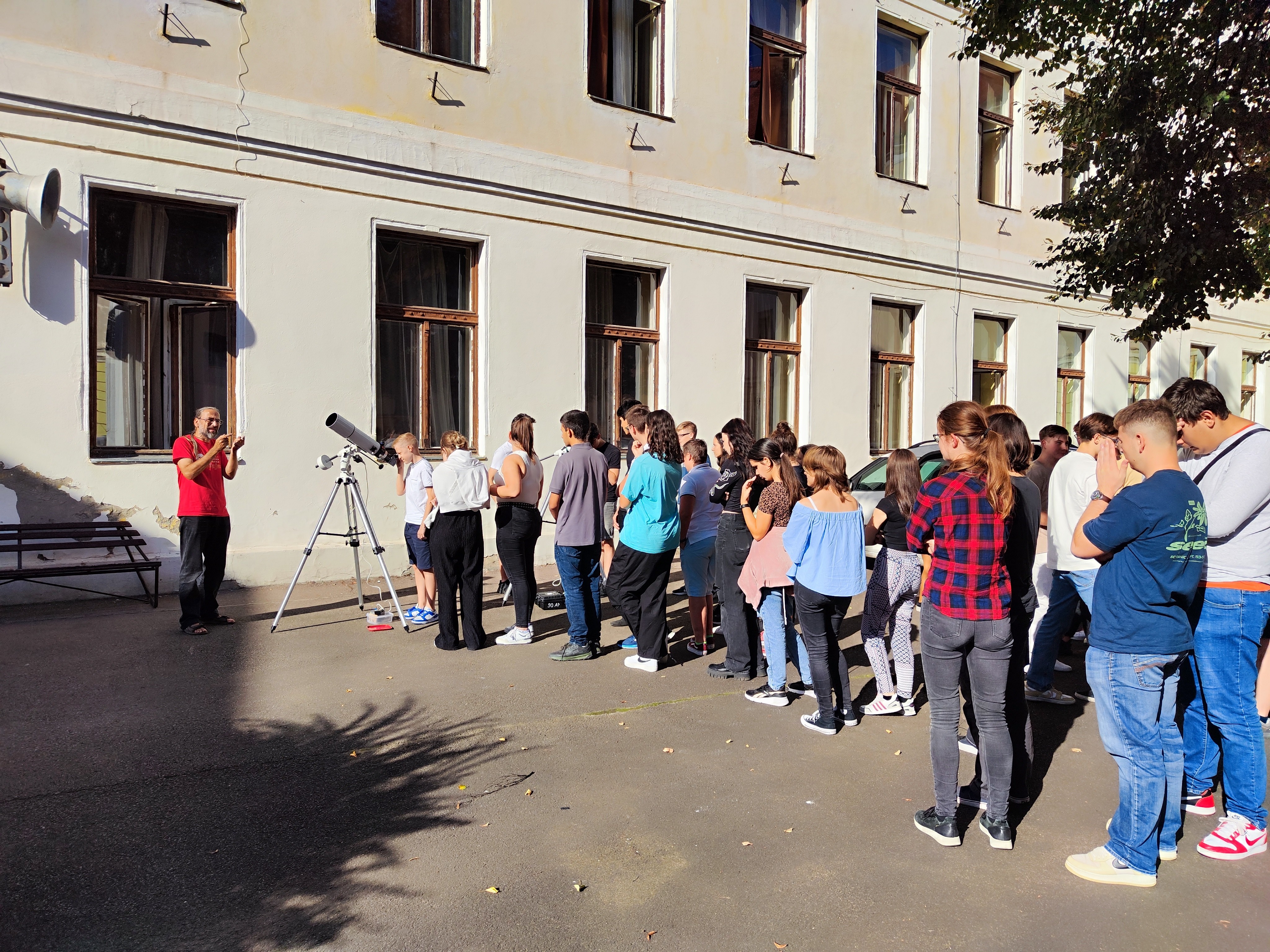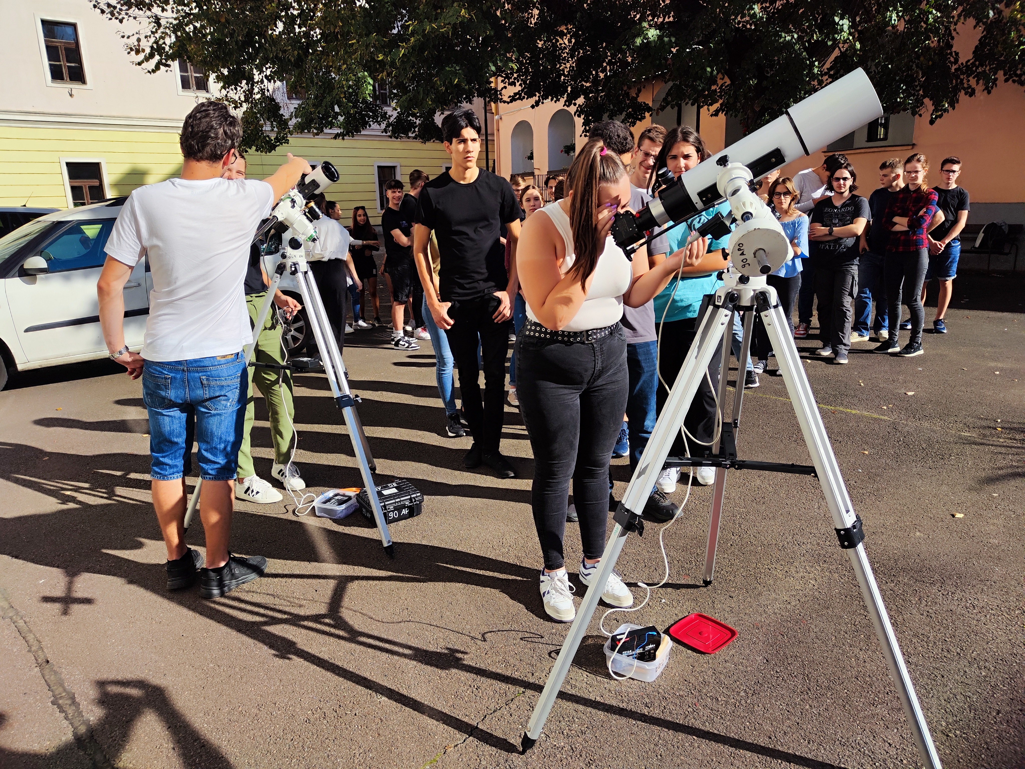 Szeptember 28-án, csütörtökön az egri Dobó István Gimnáziumba látogattunk, ahol csillagászati programot tartottunk 50 diáknak és tanáraiknak. Az időjárás is kedvezett a távcsöves észleléshez, egy felhő sem zarvarta és a légkör is nyugodt volt.