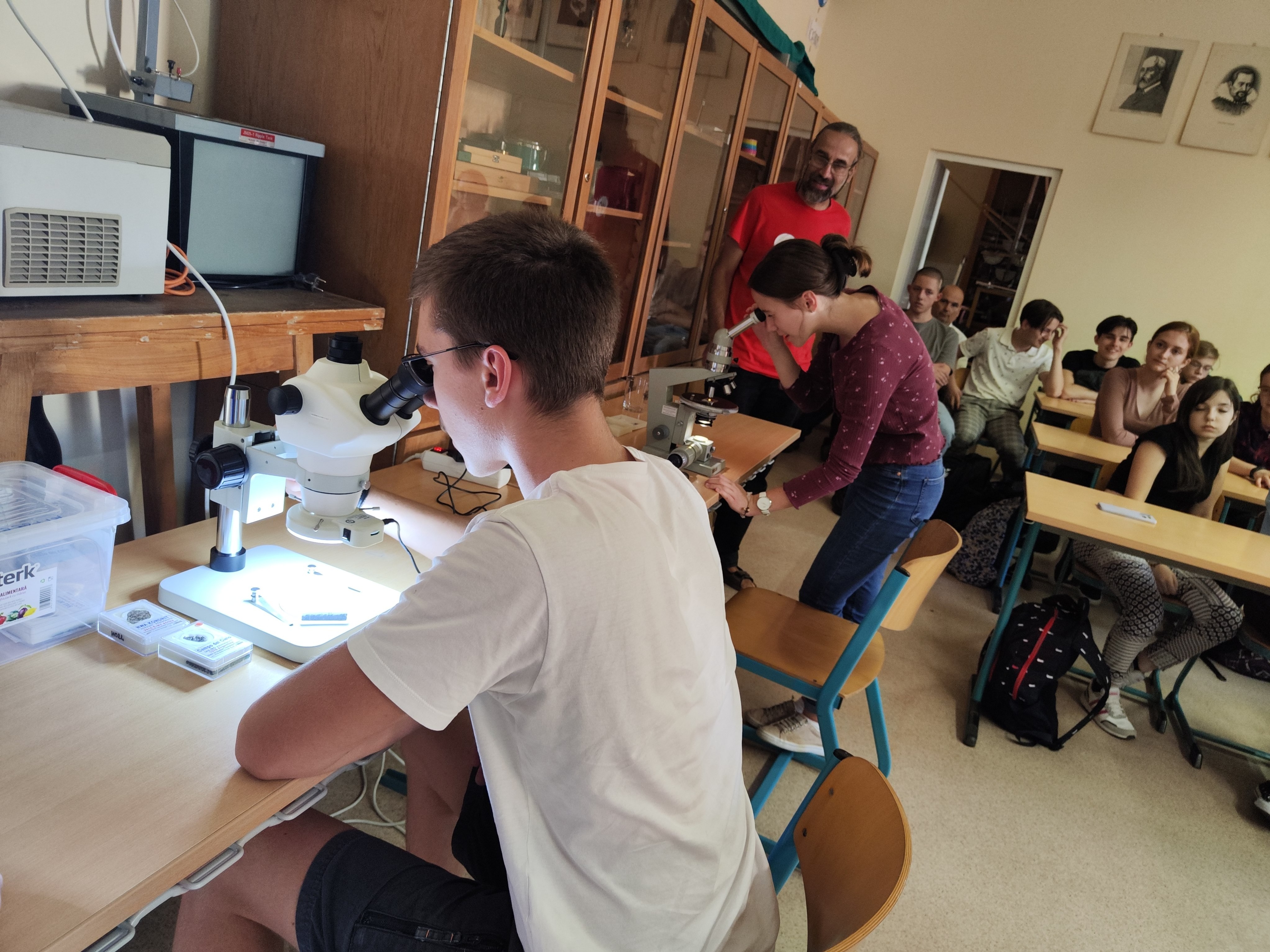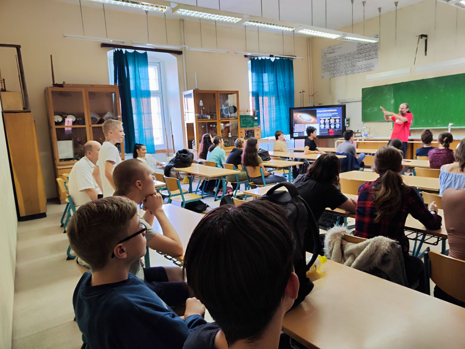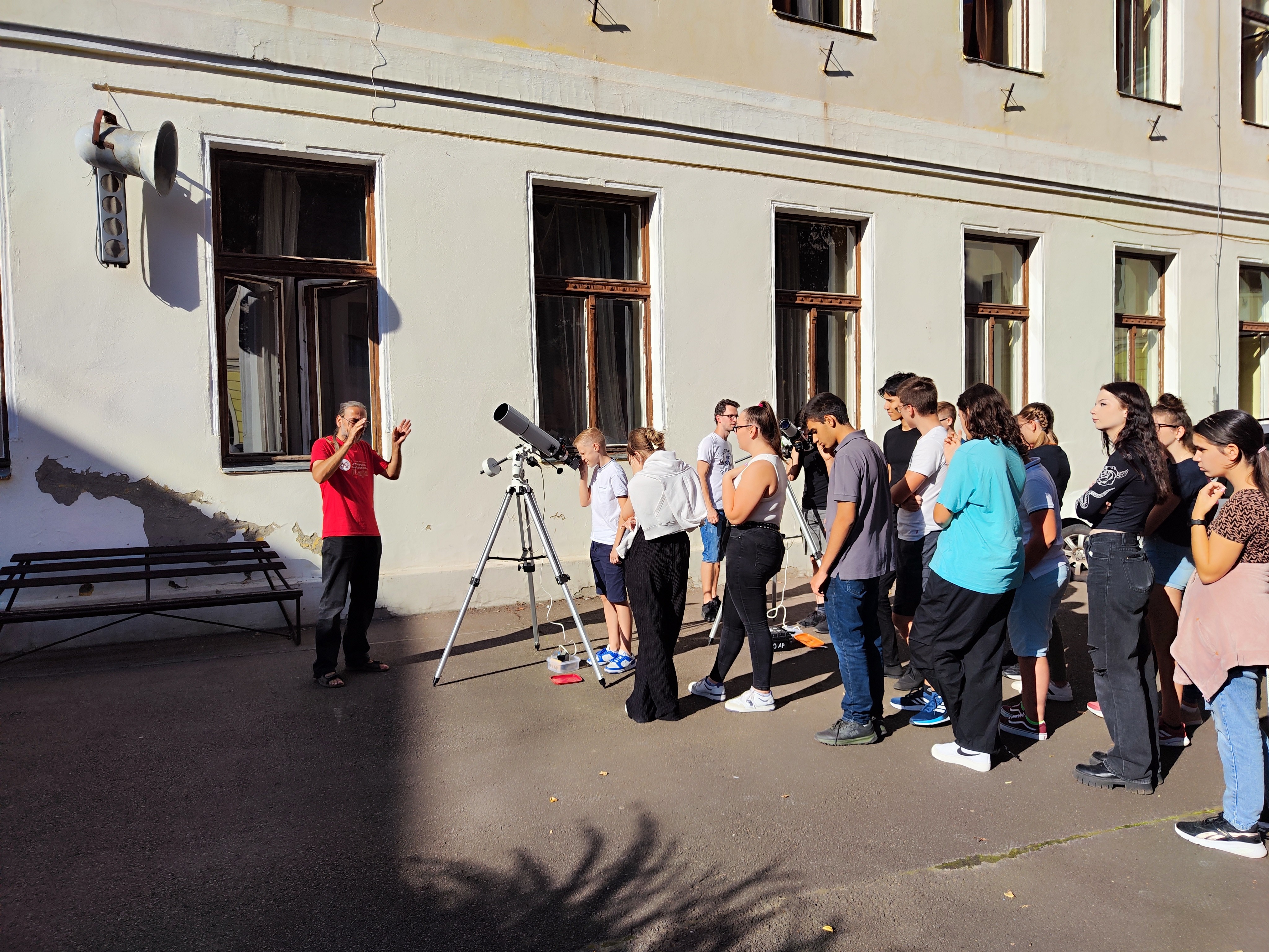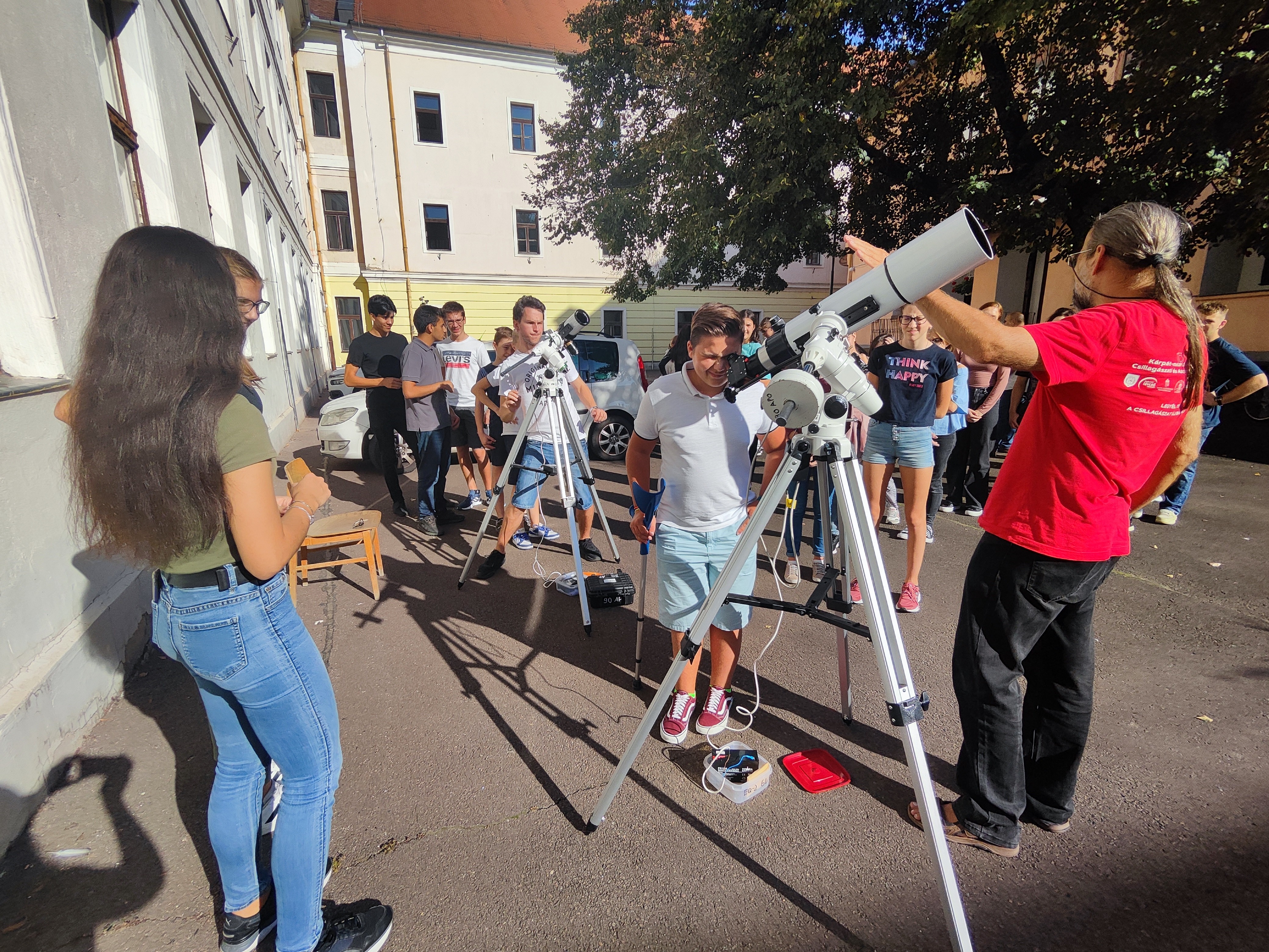 Szeptember 28-án, csütörtökön az egri Dobó István Gimnáziumba látogattunk, ahol csillagászati programot tartottunk 50 diáknak és tanáraiknak. Az időjárás is kedvezett a távcsöves észleléshez, egy felhő sem zarvarta és a légkör is nyugodt volt.