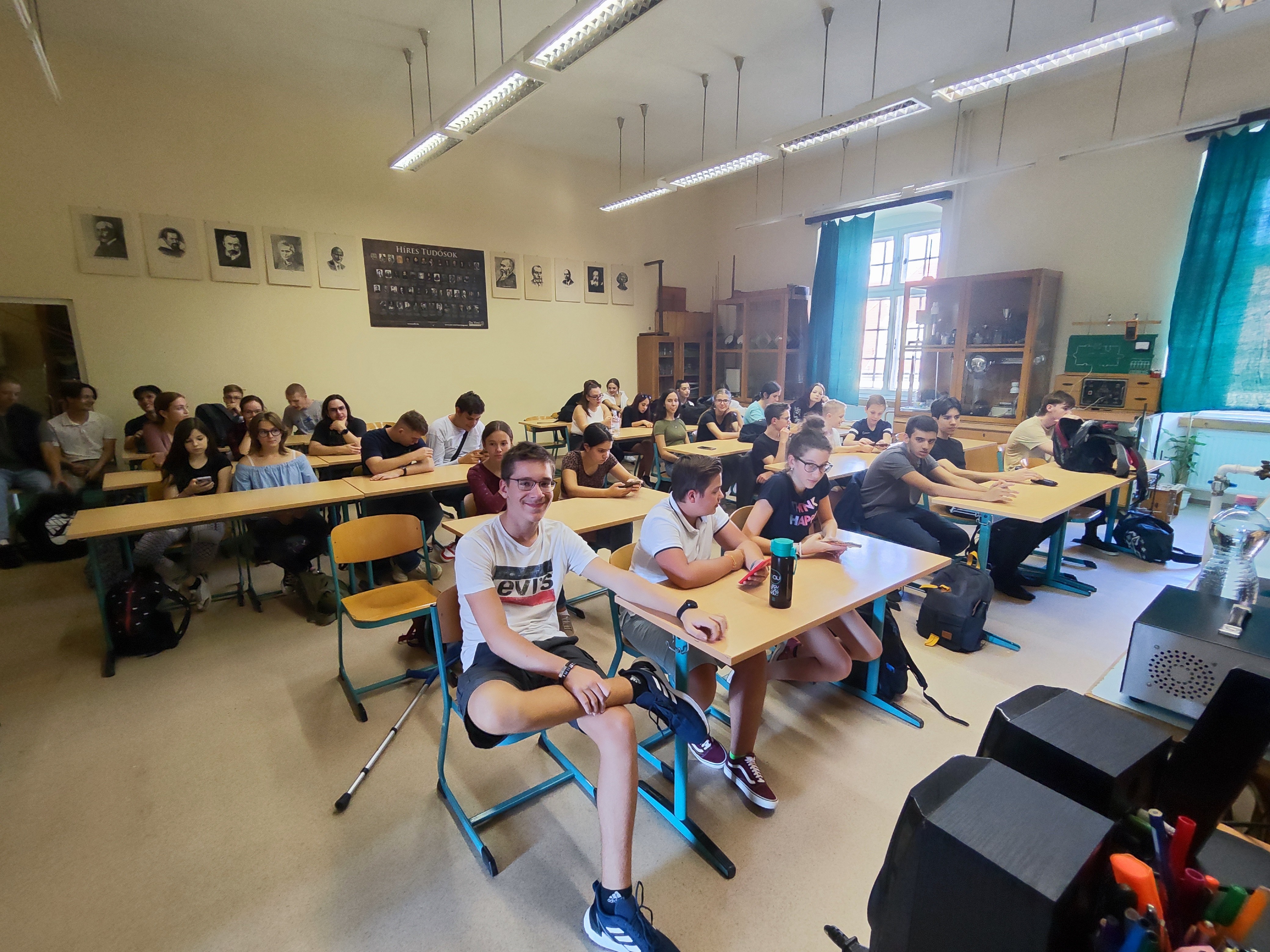 Miután mindenki végzett a napészleléssel és válaszoltunk az összes kérdésre elpakoltuk a távcsöveket, majd a fizika teremben folytatódott a program.