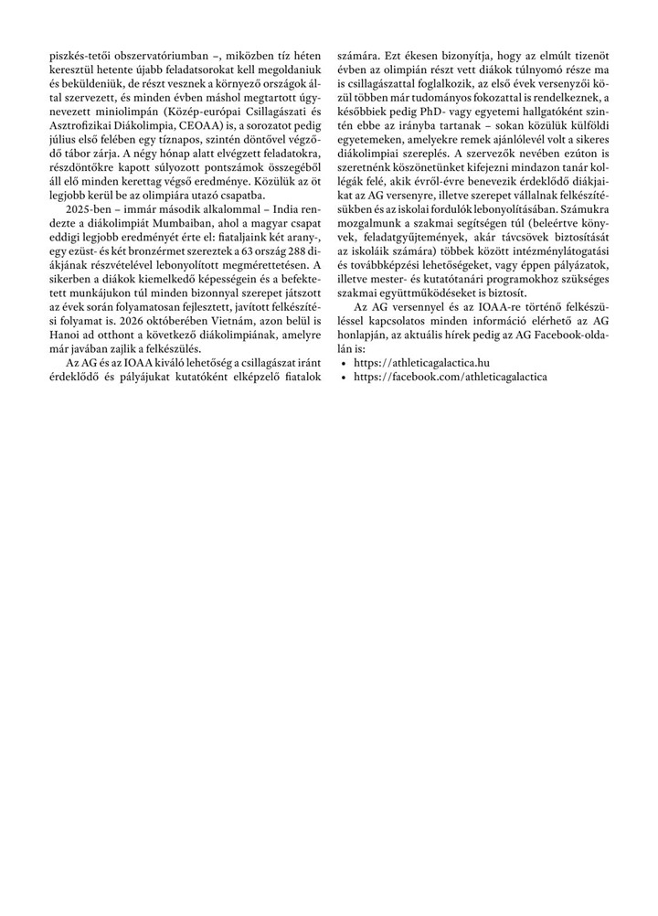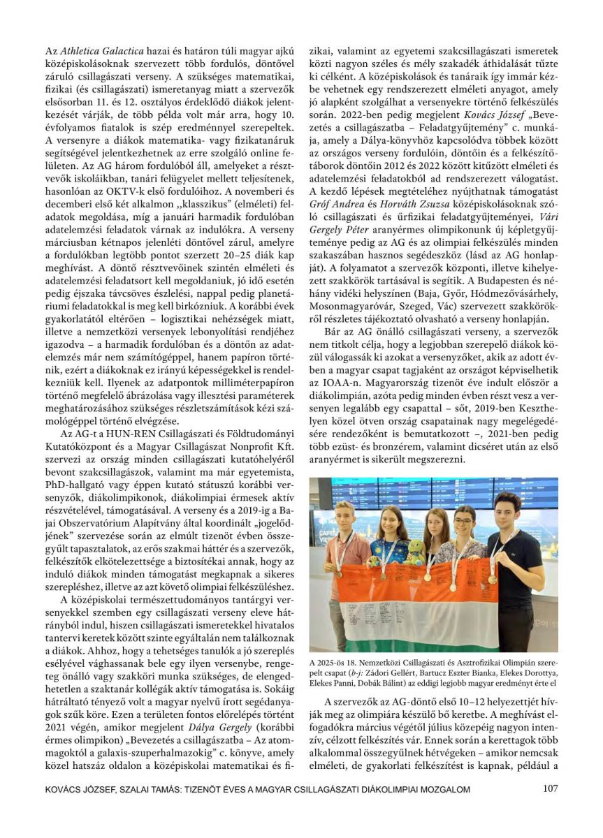 Ennek apropóján jelent meg Dr. Kovács József és Dr. Szalai Tamás cikke a mozgalomról, az Athletica Galacticaról és az olimpiai felkészítésről a Fizikai Szemle márciusi számában.