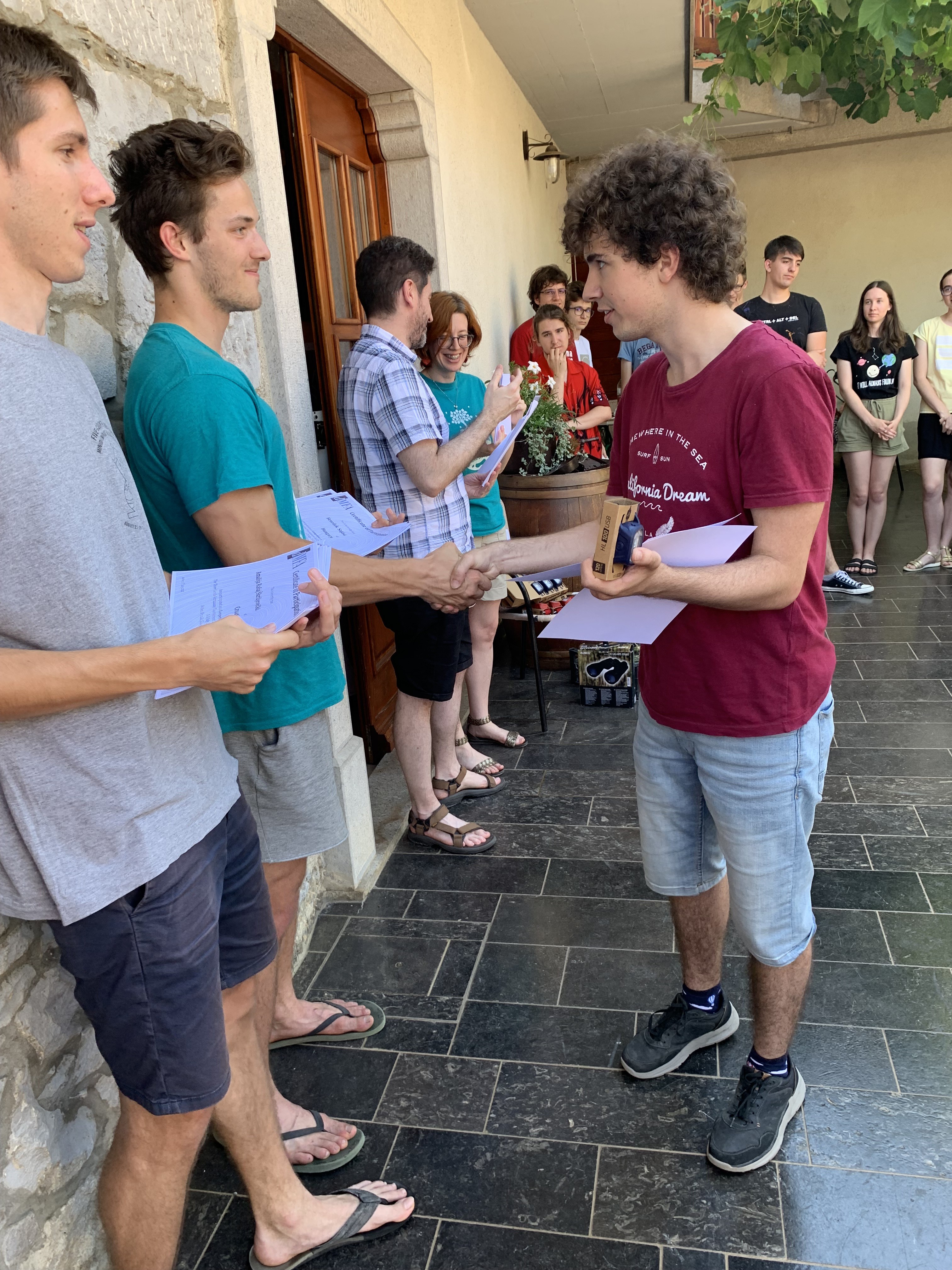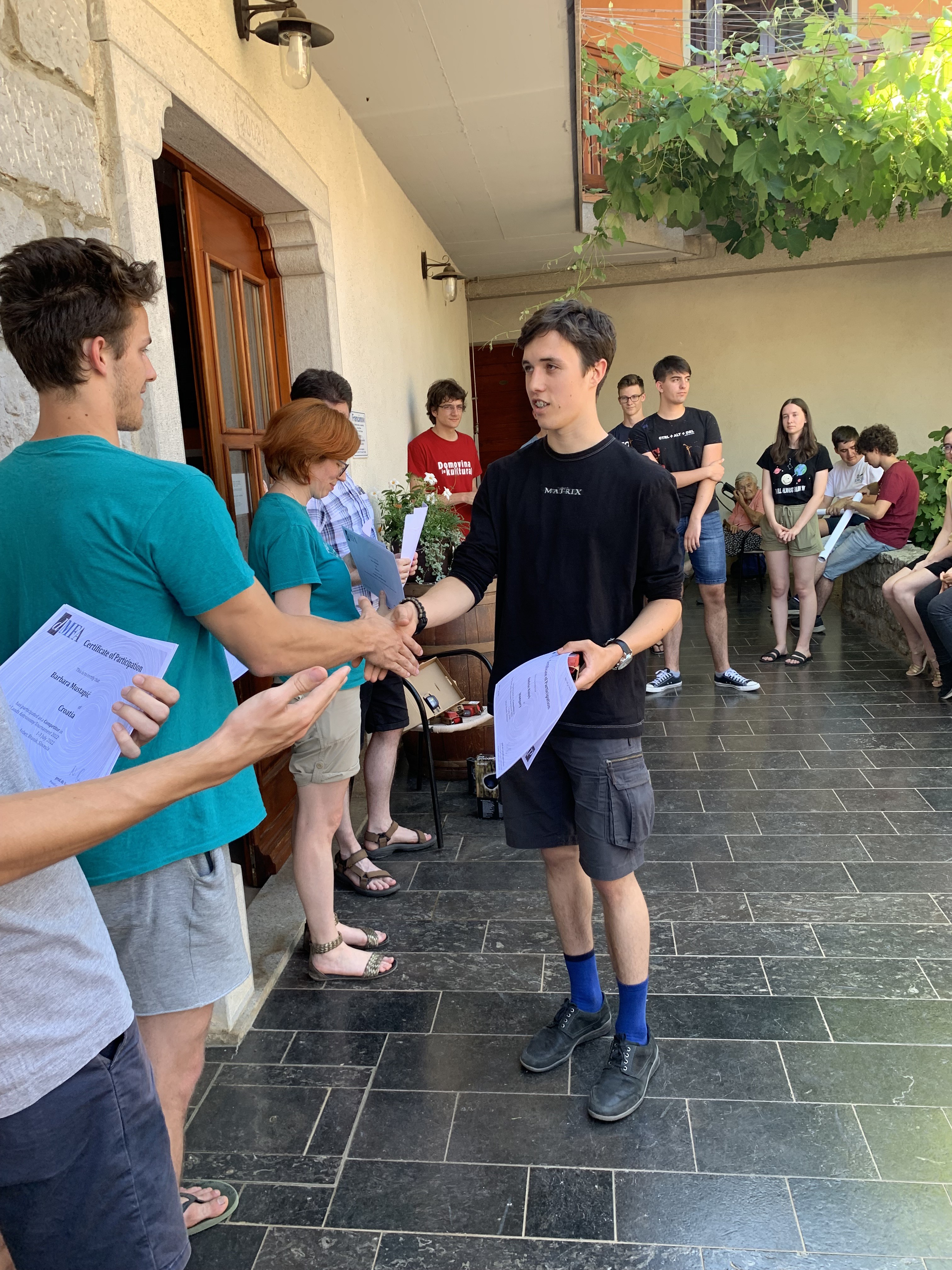 Július 1-jén, pénteken délben érkezett meg a magyar csapat Avberbe, ahol a vendéglátóik helyi specialitással fogadták őket ebédre. Ezt követően a diákok elfoglalták szobáikat, ahol pazar volt a kilátás. A felkészítőknek egy szomszédos település, Branik hangulatos fogadója adott otthont a Vipava-völgyben.