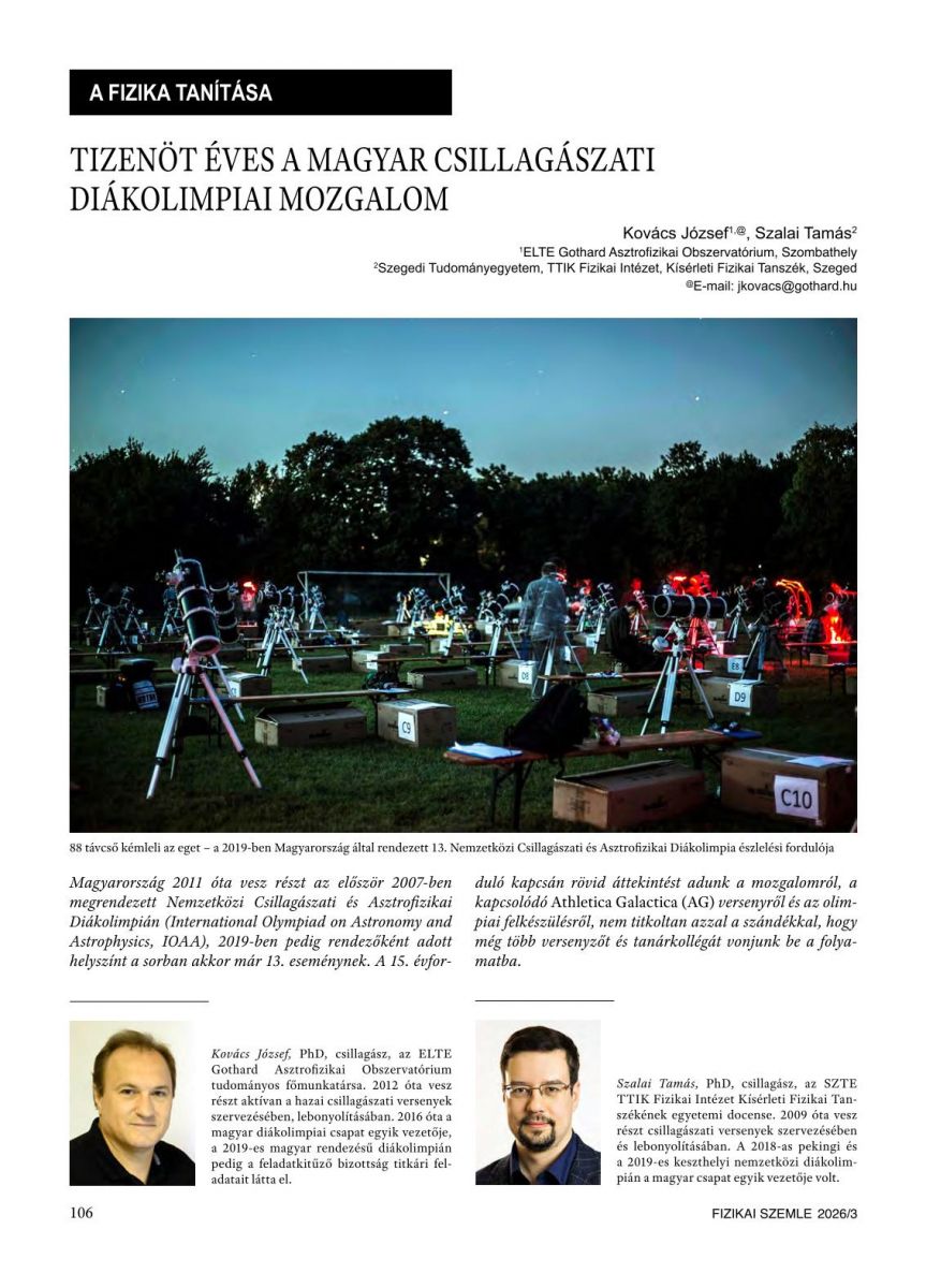 Ünneplünk az idei évben: 15 évvel ezelőtt vett részt az első öt fős csapat a Nemzetközi Csillagászati és Asztrofizikai Diákolimpián (IOAA).